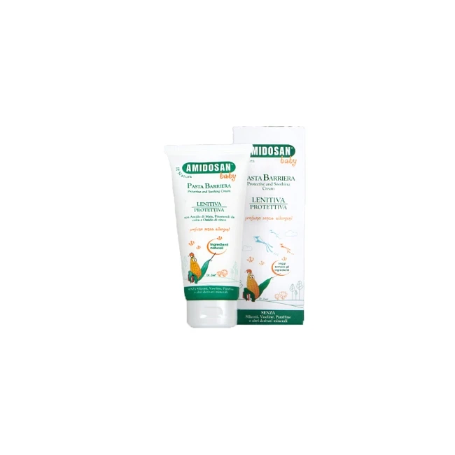 Sono tanti i momenti in cui il bambino necessita di un prodotto sicuro, naturale e di immediata ed eccezionale efficacia: al normale cambio del pannolino ma anche in situazioni particolari come dermatiti da pannolino, piccole eruzioni cutanee dovute a variazioni nell'alimentazione o alla nascita di un nuovo dentino.Amidosan Baby Pasta Barriera, con la sua composizione di origine naturale, a base di ossido di zinco, senza vaseline e paraffine (comuni in questo tipo di prodotti ma occlusive e comedogeniche) senza PEG e con la presenza di fitosteroli, burro di karité, vitamine e preziosi oli emollienti, assicura un rapido effetto lenitivo e riequilibrante.