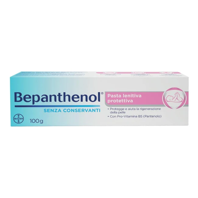 La sua formula contiene Pantenolo, o pro-vitamina B5, un principio attivo di particolare importanza per l'epidermide poiché, oltre ad idratarla, la aiuta a rigenerarsi agendo dall'interno. La pelle rappresenta infatti la prima linea di difesa contro le aggressioni esterne: più viene favorita la sua rigenerazione, maggiore è la sua capacità di "autoproteggersi" dalle irritazioni causate da agenti esterni. Bepanthenol Pasta Lenitiva Protettiva è indicata nella prevenzione e nel trattamento della pelle facilmente irritabile perché agisce in due modi: