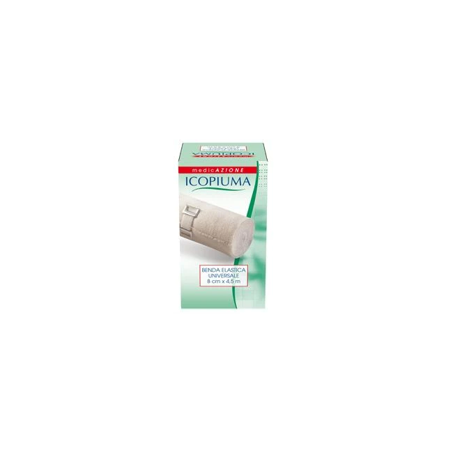 Benda elastica universale 8 cm x 4,5 m. Indicata per bendaggi compressivi leggeri, traumi distorsivi lievi e per la protezione delle medicazioni. Robusta, elasticità costante, permeabile all'aria, facile da applicare. È un dispositivo medico CE. Tutte le referenze Icopiuma sono caratterizzate da materiali di alta qualità: i supporti di grado medicale utilizzati sono morbidi e confortevoli, gli adesivi sono ipoallergenici e privi di solventi, particolarmente delicati sulla pelle e i tamponi offrono un grande potere assorbente.