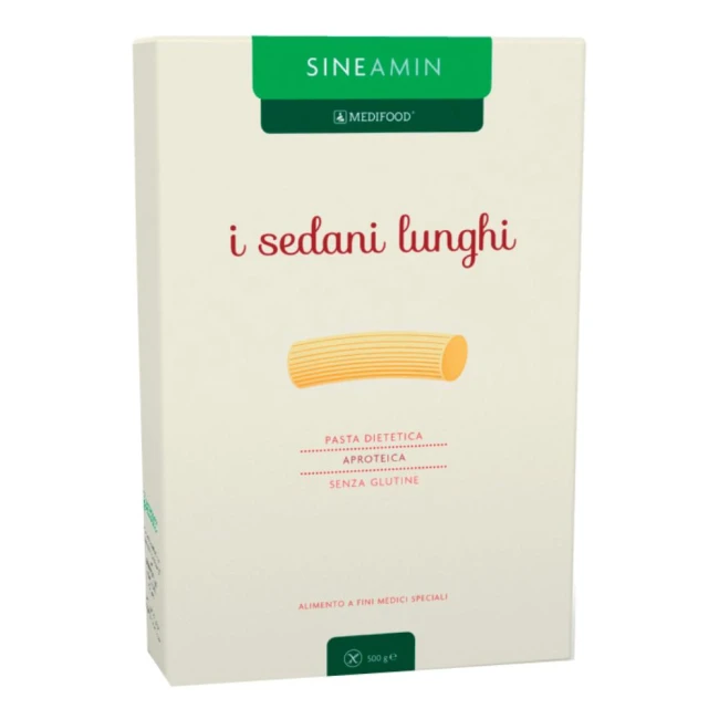 Pasta aproteica e senza glutine. Per il trattamento dietoterapico di soggetti con insufficienza renale cronica e aminoacidopatie metaboliche. La pasta Sineamin è inoltre indicata nelle diete aproteiche, prive di glutine ed a basso contenuto di sodio, potassio e fosforo.