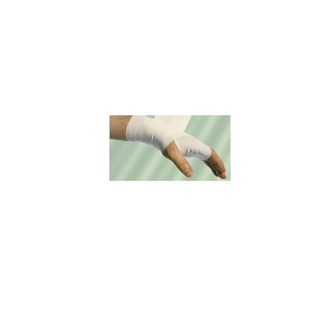 Estensibilità di grado medio e pari a ca. 80%. Particolarmente indicata per impiego generico nella struttura ospedaliera, si dimostra ottima per il fissaggio di compresse di medicazione come pure nei bendaggi di sostegno leggero ed ove venga richiesta una compressione medio leggera. Dotata di fermagli per il fissaggio, viene fornita in una vasta gamma di misure e con lunghezza in tensione mt 4,5.