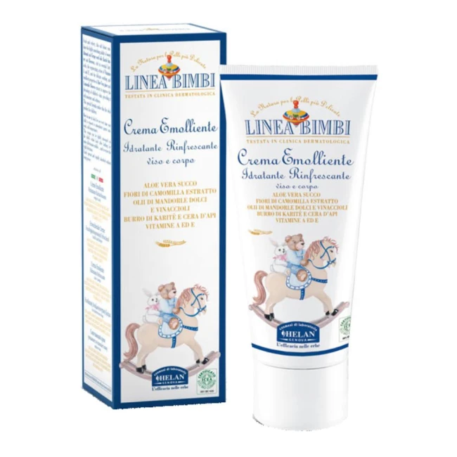 Fluida emulsione che associa all'attività nutriente degli olii di Mandorle dolci e Vinaccioli, del burro di Karitè e cera d'Api, ricchi di acidi grassi essenziali, l'attività rigenerante della Vitamina E e la delicatezza dell'azione addolcente, emolliente e calmante dell'Aloe vera succo e dell'estratto di fiori di Camomilla.