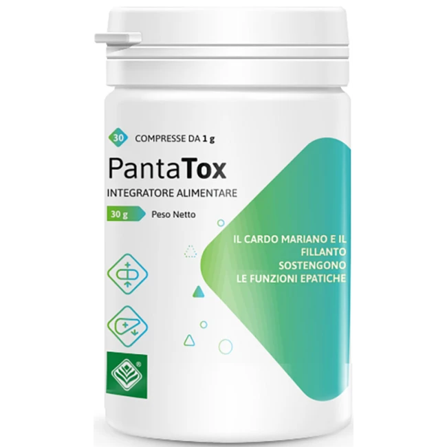 Pantatox è un integratore alimentare a base di estratti di cardo mariano e fillanto che sostengono le funzioni epatiche, con tè verde utile per le sue proprietà depurative, vitamine C ed E che contribuiscono a proteggere le cellule dallo stress ossidativo, e altre sostanze sinergiche.
