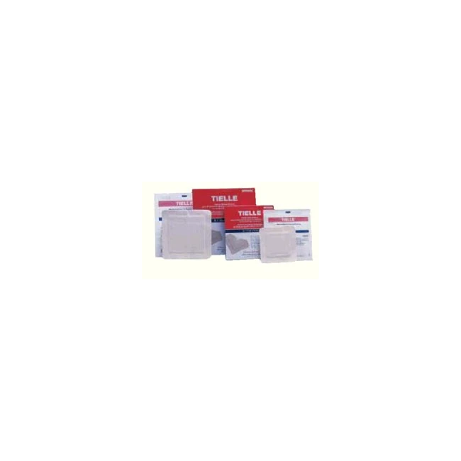 uno strato esterno in poliuretano semipermeabile, dotato di un adesivo in gel poliuretano eudermico, un doppio strato intermedio in TNT privo di sostanze leganti ed un cuscinetto di idropolimero di poliuretano, a contatto diretto con la ferita.