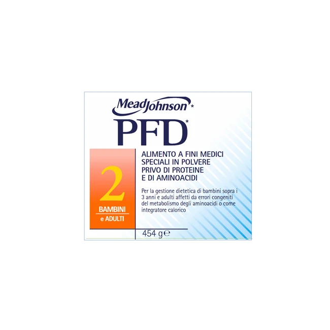 PFD 2 non è un alimento completo. Per l'utilizzo in caso di errori congeniti del metabolismo, occorre aver cura di fornire una quantità adeguata di proteine ed aminoacidi per favorire la crescita, utilizzando altre fonti alimentari di proteine così come necessario. Il pediatra dovrà controllare, con attenzione e costanza, l'abbinamento di PFD 1 con altri cibi e liquidi ed equilibrare la dieta dopo esami del sangue da effettuare frequentemente. Per la salute del bambino si consiglia di seguire scrupolosamente le istruzioni sotto riportate. L'igiene, la preparazione, la diluizione, l'uso e la conservazione eseguiti correttamente sono importanti durante la preparazione del biberon. Gli alimenti in polvere per lattanti non sono sterili. Il medico valuterà l'utilizzo del prodotto nei casi appropriati. Non utilizzare forni a microonde per riscaldare il preparato, poiché possono verificarsi gravi ustioni. non somministrare per via parenterale.