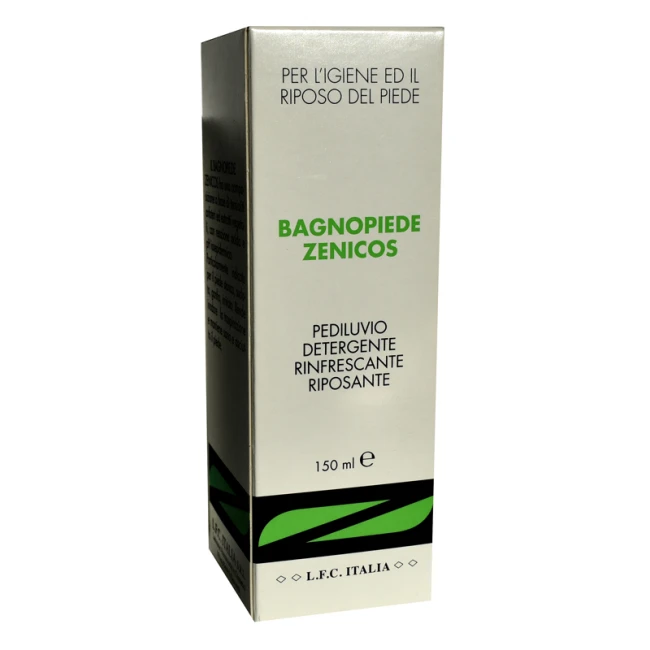 Il Bagnopiede Zenicos è un pediluvio per l'igiene ed il riposo del piede stanco, sudato, gonfio, irritato. I componenti, tra cui un estratto vegetale, possiedono azione deodorante e rifrescante. È particolarmente indicato per il sollievo dei piedi affaticati alla sera o dopo lunghe passeggiate. L'uso quotidiano rende inodore la traspirazione e mantiene il piede fresco e asciutto.