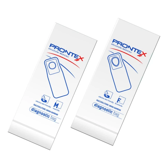 BAG FEMMINILESacchetto sterile con bordo anatomico adesivizzato per la raccolta delle urine dei bambini.