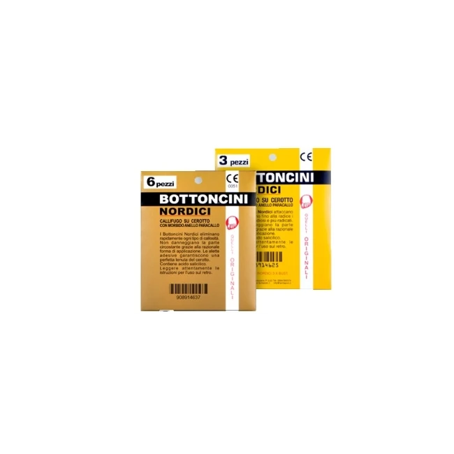 Callifugo a base di acido salicilico su cerotto con morbido anello paracallo.I Bottoncini Nordici eliminano ogni tipo di callosità e non danneggiano la parte circostante il callo grazie alla razionale forma di applicazione. Le alette adesive garantiscono una perfetta tenuta del cerotto.
