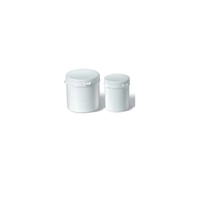 Vasetti con tappo a pressione e chiusura di sicurezza. Per pomate, capsule, compresse ed altre preparazioni galeniche.Formato