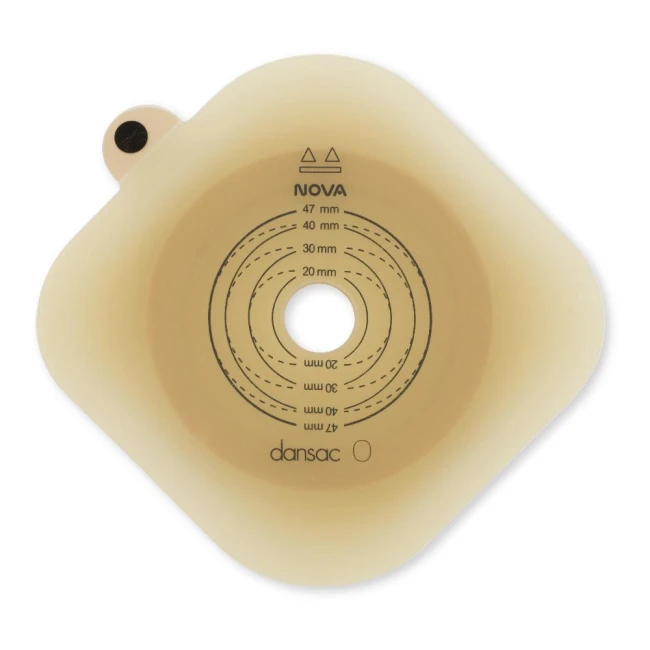 Dansac Nova 2 Placca è un dispositivo medico da utilizzare con le Sacche NovaLife 2 e Nova 2 per Colostomia, Leostomia e Urostomia. La placca a spessore differenziato, con più idrocolloide al centro, garantisce una migliore adesione. Ultraflessibile è di forma romboidale e formata da: anello per aggancio alla sacca in plastica trasparente; flangia flottante; supporto placca in materiale di sintesi traspirante EMA; pellicola di protezione trasparente, scrivibile in poliestere.