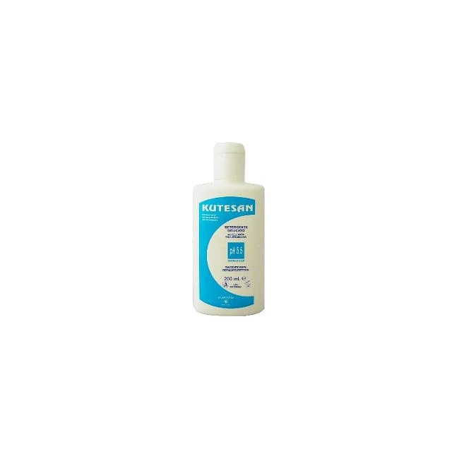 Detergente fluido idratante, dermopurificante ad elevata tollerabilità. Deterge in profondità la cute senza seccarla. La sua particolare formulazione a pH 5.5, senza saponi alcalini e coloranti, rende Kutesan Detergente indicato anche per soggetti con cute irritabile o sensibile. Grazie alla particolare azione delicata e la completa affinità con la pelle dei suoi componenti, Kutesan Detergente può essere utilizzato per l'igiene quotidiana del corpo anche più volte al giorno conservando la massima protezione del mantello idrolipidico cutaneo. Kutesan Detergente stabilizza l'acidità fisiologica e contribuisce a risolvere i problemi della cute arrossata, delicata, irritata, sensibile, secca e desquamata. Non comedogeno.Senza parabeni, senza nichel, senza sapone, senza coloranti.