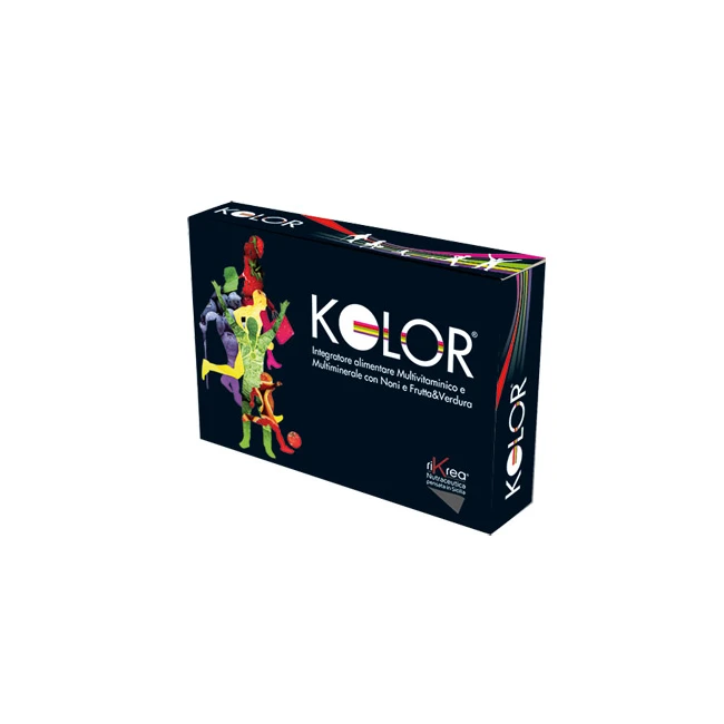Supporto nutrizionale di vitamine, sali minerali, noni e frutta e verdura. Kolor è indicato nei casi di ridotto apporto di tali sostanze o di aumento del loro fabbisogno giornaliero.