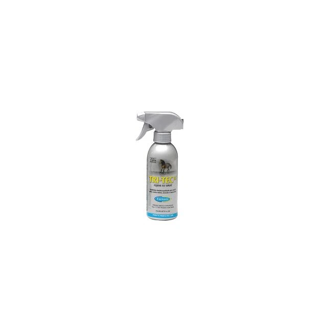 Presidio Medico Chirurgico. Reg. n° 17.937 Ministero della Sanità.Insetticida insettorepellente spray con filtro solare. I cavalli che vivono all’aperto o in scuderia sono spesso infastiditi da numerosi ectoparassiti la cui eliminazione risulta essere molto difficoltosa; questo soprattutto durante la stagione calda quando le infestazioni massive arrecano notevole disturbo agli animali. Per proteggerli è necessario trattare sia l’ambiente che l’animale con prodotti efficaci e a bassa tossicità. Tri-Tec 14 è uno speciale insettorepellente per cavalli che respinge mosche, tafani, e altri ectoparassiti fino a 14 giorni dall’applicazione. L’attività di Tri-Tec 14 è garantita dalla composizione che unisce l’azione immediata delle piretrine naturali (estratte dai fiori di Chrysanthemum cinerariaefolium), a quella più protratta nel tempo dei piretroidi. La Cipermetrina, analogo sintetico con un gruppo CN, agendo alterando la permeabilità della membrana delle cellule nervose, provoca sull’insetto una immediata paralisi. Il piretro ed i suoi derivati sintetici, pur avendo una bassissima tossicità per l’animale svolgono un’ottima azione antiparassitaria che si attua per contatto diretto con i parassiti, limitando in tal modo le numerose patologie, non ultime le reazioni allergiche, derivanti dal contatto o dalle loro punture. Tri-Tec 14 contiene, inoltre, un filtro solare che protegge i principi attivi dalla degradazione dei raggi solari, senza determinare irritazione cutanea. Evitare di spruzzare il prodotto sulla testa in direzione di occhi, naso e bocca, dove è consigliabile utilizzare il prodotto specifico Roll-On e sulle piccole ferite ed abrasioni che possono essere protette con la crema insettorepellente Swat Ointment.