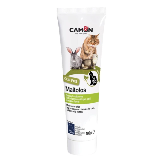 Alimento complementare per gatti, conigli e furetti che, aggiunto al cibo o somministrato direttamente, aiuta a mantenere il normale equilibrio della flora intestinale. Inoltre il suo utilizzo favorisce l’eliminazione naturale dei boli di pelo inghiottiti. Basta aggiungere alla dieta giornaliera questa pasta ricca di sciroppo di malto, fruttoligosaccaridi e vitamine per contribuire a mantenere regolari le funzioni del tratto gastro-intestinale. Per un amico quattrozampe in perfetta forma.Formato