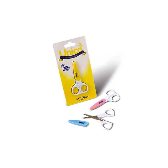 È presente anche un cappuccio di protezione in materiale termoplastico per proteggere le lame delle forbici durante il periodo di inutilizzo, che non deve essere lasciato alla portata del bambino mentre si usano le forbicine.