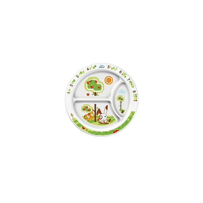Piatto con divisori, per tenere le pietanze separate.Apprendimento divertente durante la prima pappa: