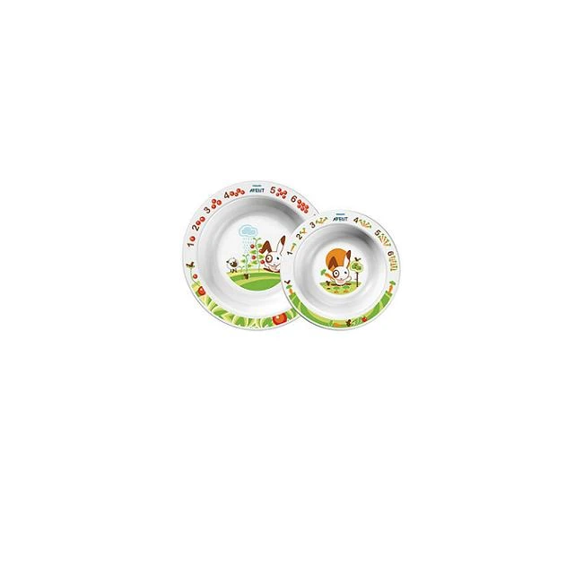 Piatto che stimola l'alimentazione attraverso l'apprendimento (disegni stampati sul bordo).Ideale per la prima alimentazione e gli spuntini: