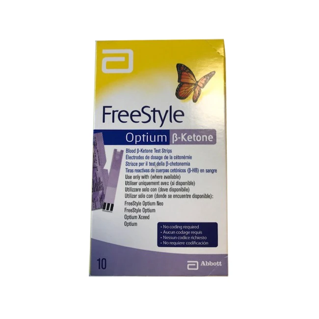 Strisce reattive progettate per la misurazione di beta-chetone nel sangue intero capillare fresco dal polpastrello. Le strisce reattive sono per l'uso al di fuori del corpo (uso diagnostico in vitro) e sono auto-test o ad uso professionale sanitario. Gli operatori sanitari possono anche utilizzare campioni di sangue venoso, a condizione che i campioni di sangue intero venoso, a condizione che i campioni vengano utilizzati entro 30 minuti dalla raccolta. Questi sistemi non sono destinati alla diagnosi di diabete mellito, ma devono essere usati come ausilio nel monitoraggio dell'efficacia dei programmi di controllo del diabete.