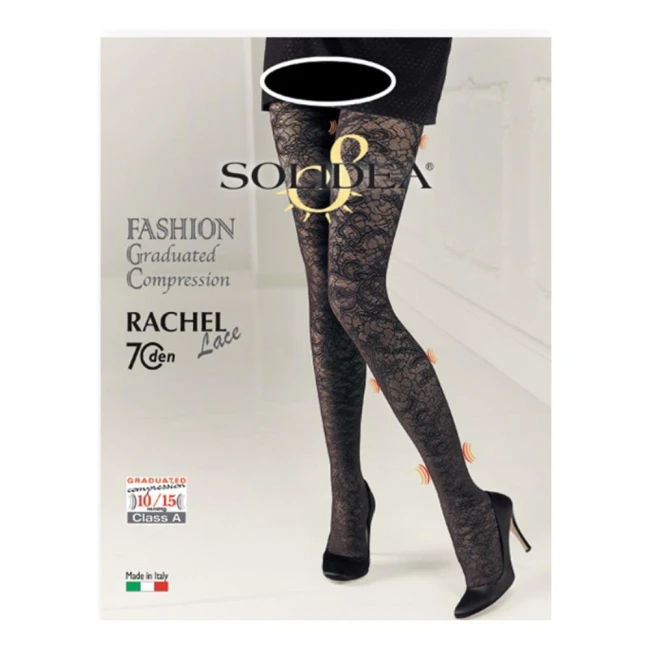 Collant in pizzo a compressione graduata. Il disegno esclusivo esalta sensualità e charme per un effetto ricco e lussuoso, da abbinare al look più sobrio ed ottenere un outfit di grande classe. L’azione preventiva della compressione graduata 10/15 mmHg combatte pesantezza e gonfiori alle gambe e contrasta l’insufficienza venosa senza disturbare l’aspetto raffinato e l’estetica impareggiabile della trama in pizzo. Con funzione igienica Sanitized.Colore: nero.