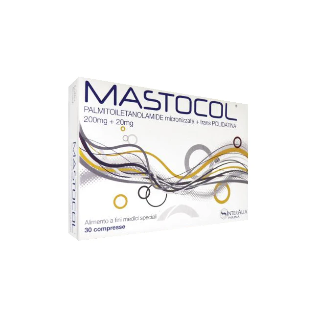 Mastocol è un alimento destinato a fini medici speciali, contenente l’associazione brevettata di due principi attivi presenti in alimenti: Palmitoiletanolamide, in forma micronizzata (PEA-m), e Polidatina. PEA-m si è dimostrata in grado di favorire il mantenimento di una corretta funzionalità della mucosa intestinale, e di contribuire al ripristino di una corretta sensibilità viscerale, contrastando il dolore addominale.