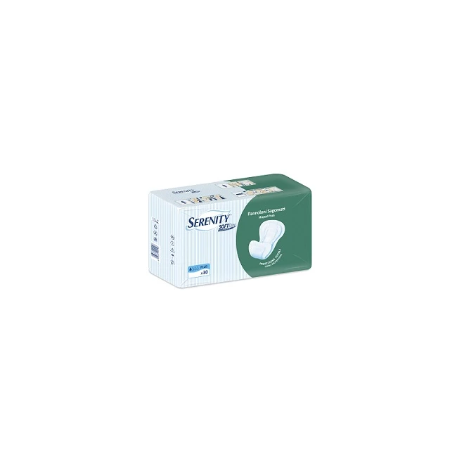 Il pannolone sagomato Serenity Soft Dry + con dermoprotezione all'aloe, rappresenta la soluzione ottimale per i soggetti con cute delicata e sensibile. Da utilizzare in abbinamento alle apposite mutandine elasticizzate Serenity, lavabili e riutilizzabili, ha una forma anatomica che offre comodità e libertà di movimento. Il suo corpo assorbente, formato da un mix di cellulosa e polimeri superassorbenti, favorisce il rapido assorbimento e contenimento dei liquidi, prevenendo il rilascio in superficie e mantenendo la pelle asciutta. E la sua particolare struttura, grazie anche alle barriere laterali, consente grande protezione da eventuali fuoriuscite. Anche in presenza di incontinenza moderata e grave. Dispositivo medico disponibile in quattro livelli di assorbenza (Plus, Extra, Super e Maxi) per rispondere alle diverse necessità di protezione; per facilitare la rapida identificazione, ogni livello di assorbimento è contrassegnato da un diverso colore.