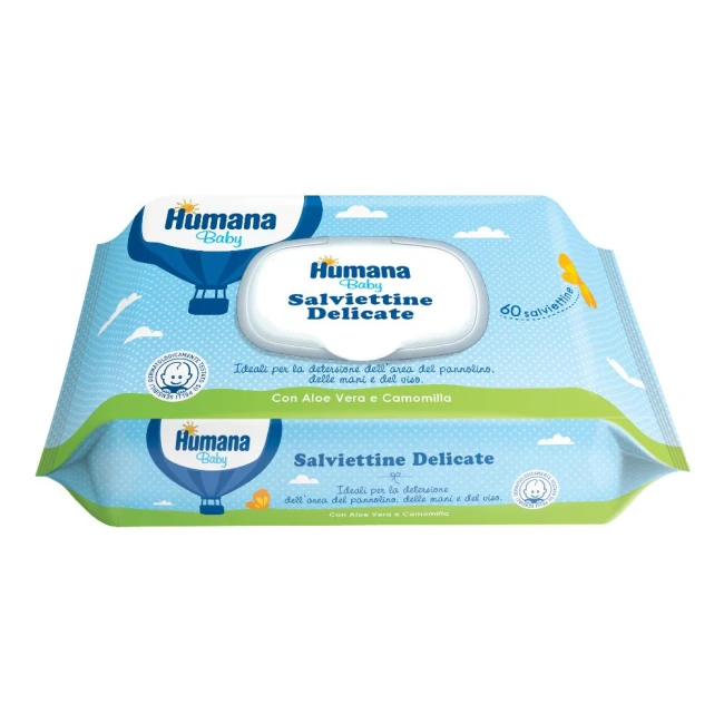 SALVIETTINE DELICATESalviettine formulate per minimizzare i rischi di allergie. Possono essere utilizzate per la detersione di tutto il corpo del bambino, lasciando la pelle fresca e subito asciutta, rispettando il pH fisiologico. Azione lenitiva grazie alle riconosciute proprietà dell'aloe vera. Clinicamente testate.