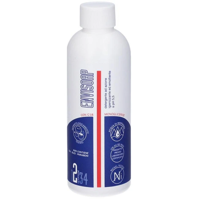 Detergente emolliente ed igienizzante a base acquosa, deterge la pelle in profondità, ma delicatamente, rispettandone il pH leggermente acido.
