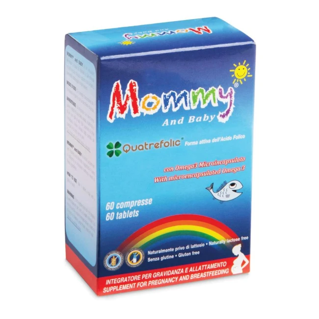 Calcio carbonato (carrier: amido pregelatinizzato), olio di pesce polvere titolato 65% (carrier: biossido di silicio); agente di carica: cellulosa microcristallina; vitamina C, ferro fumarato, vitamina E acetato (carrier: amido, biossido di silicio), vitamina B3, zinco ossido, rame gluconato, vitamina B5; antiagglomeranti: magnesio stearato vegetale, biossido di silicio; vitamina D3, vitamina B2, vitamina B6, vitamina B1, acido folico, potassio ioduro, sodio selenito, biotina, vitamina B12. Agente di rivestimento: idrossipropilmetilcellulosa, talco, titanio biossido, PEG 6000, giallo tramonto.