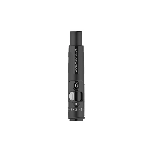 Il pungidito Accu-Chek FastClix è un dispositivo 1-Click con cilindro caricatore integrato. La sua tecnologia permette un prelievo veloce, semplice e poco doloroso. È possibile impostare 11 diverse profondità di puntura, a seconda delle caratteristiche della pelle. Utilizza un cilindro precaricato con 6 lancette, che permette di utilizzare le lancette senza maneggiarle singolarmente.