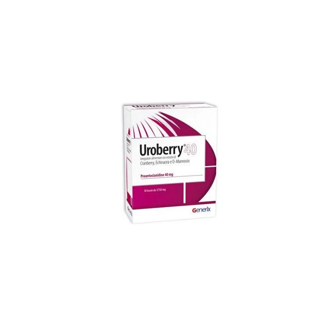 Integratore alimentare utile per la protezione e il benessere delle vie urinarie.1 busta apporta 40 mg di proantocianidine.