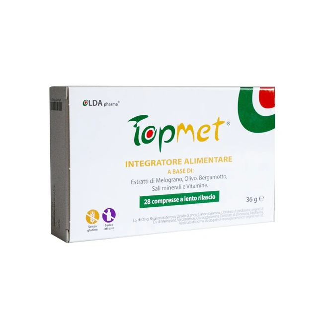 Integratore alimentare a base di estratti di melograno, olivo, bergamotto, sali minerali e vitamine.