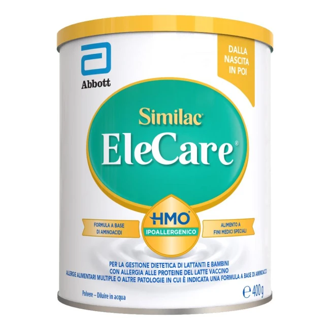 Similac EleCare è una formula nutrizionalmente completa a base di aminoacidi con l'aggiunta di 2’FL-fucosillattosio (HMO-Human milk oligosaccharide non derivato da latte materno) un’oligosaccaride strutturalmente identico a quello del latte materno. Da utilizzare sotto controllo medico.