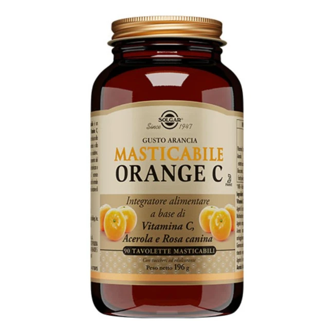 DescrizioneIntegratore alimentare a base di vitamina C, ciliegia acerola e rosa canina in tavolette masticabili al gusto di arancia. La vitamina C contribuisce al mantenimento della normale funzione del sistema immunitario e alla protezione delle cellule dallo stress ossidativo. Contribuisce al normale funzionamento del sistema nervoso e concorre a ridurre stanchezza e affaticamento. Inoltre la vitamina C accresce l'assorbimento del ferro e favorisce la formazione del collagene per la normale funzione di gengive, pelle, cartilagini e ossa. La ciliegia acerola e la rosa canina hanno azione di sostegno, ricostituente ed antiossidante. Le tavolette masticabili contengono zucchero ed edulcoranti.