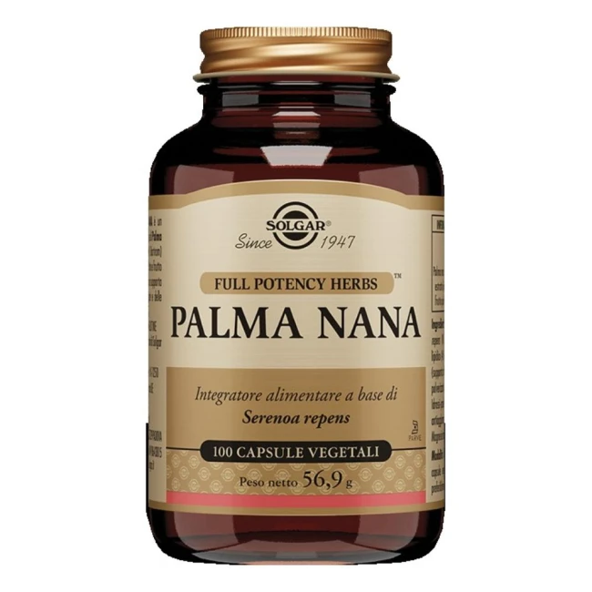 Integratore alimentare a base di Palma nana [Serenoa repens (W. Bartram) Small] estratto lipidico di frutto e frutto polverizzato. La palma nana supporta la funzionalità della prostata e delle vie urinarie.