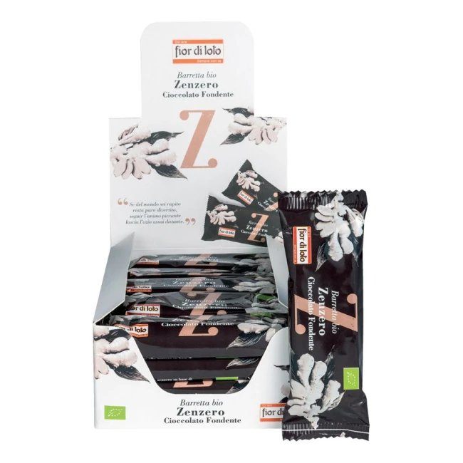 Barretta allo zenzero bio con una base di cioccolato fondente.