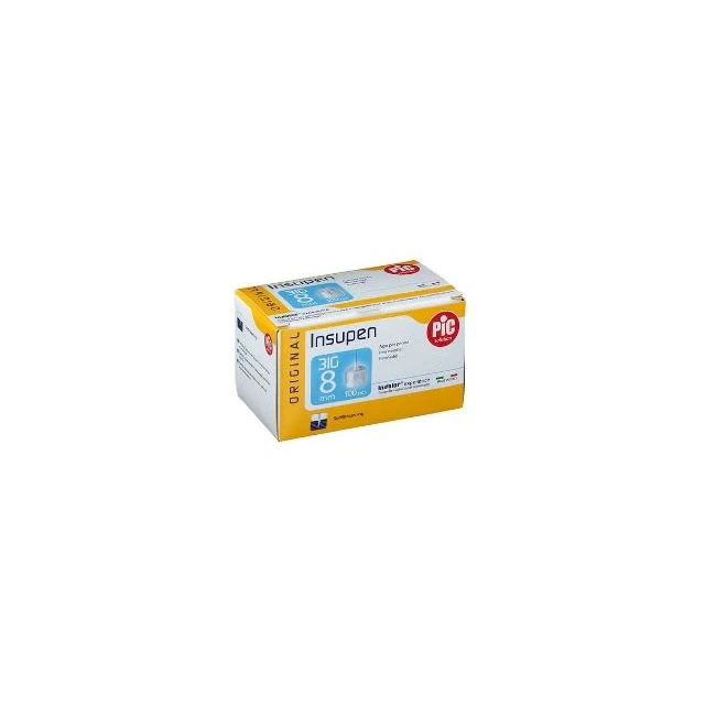 Aghi penna sterile e monouso per la terapia insulinica, con una triplice affilatura che riduce il fastidio. In Formato 31 G x 8 mm.