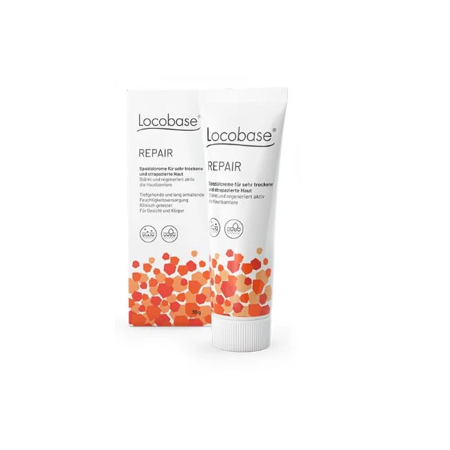 Pomata speciale di uso consolidato con un alto contenuto di grassi e una combinazione specifica di lipidi (ceramide, colesterolo e acidi grassi) uguali a quelli che si trovano naturalmente nella barriera cutanea. Locobase Repair protegge e ripristina una barriera cutanea indebolita.