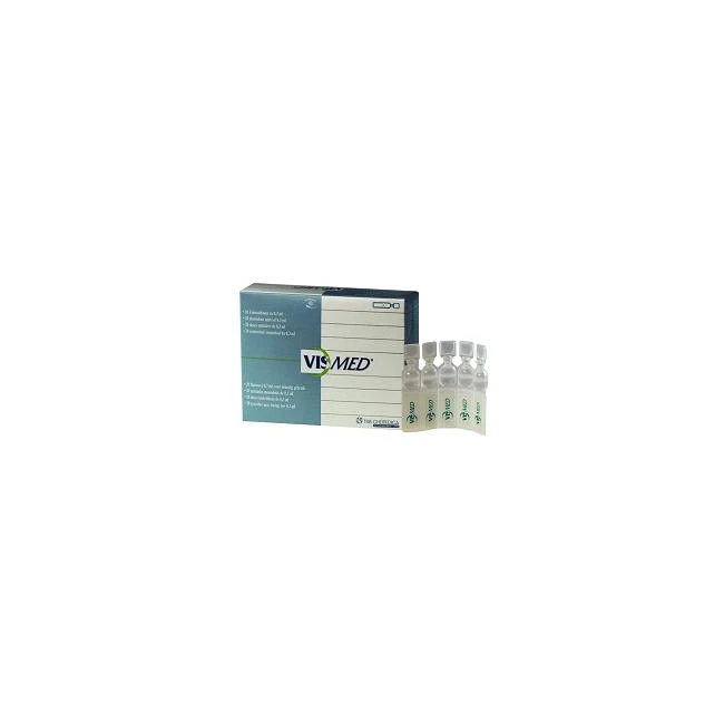 Dispositivo medico marcato CE classe II, iscritto nel repertorio dei dispositivi medici, numero di repertorio: 181468.Vismed® – Sodio ialuronato ottenuto per fermentazione 0,18 %, gocce oculari lubrificanti, prodotto sterile, senza conservanti.