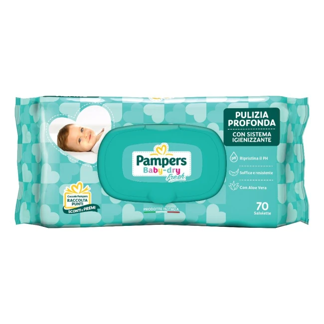 Per una pelle pulita e protetta, Pampers ha studiato le salviettine baby fresh. Grazie alla loro formula, oltre a pulire delicatamente la pelle del bambino, ripristinano all'istante il pH naturale della pelle.
