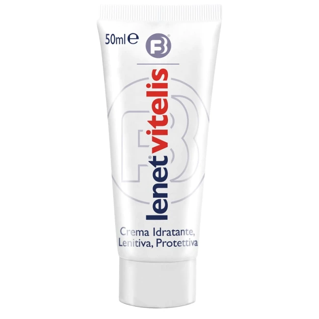 Crema formulata per aiutare la pelle che necessita di un trattamento intensivo ad assorbimento molto rapido "quick absorption formula". Gli ingredienti funzionali presenti nella composizione conferiscono al prodotto le sue principali caratteristiche: la glicerina presenta una spiccata attività idratante e protettiva in grado di soccorrere la pelle ed aiutare ad evitare gli effetti dannosi degli agenti esterni; l'olio di girasole, l'olio di jojoba e la cera carnauba hanno azione emolliente e, insieme all'estratto di Hamamelis, favoriscono il mantenimento della pelle nel suo stato ottimale; la vitamina E è un ben noto antiossidante utile per contrastare l'azione dei radicali liberi sulla pelle e rallentare così l'invecchiamento cellulare. Lenet Vitelis è ideale per contrastare l'eccessiva secchezza dell'epidermide del viso e del corpo, per donare sollievo in situazioni di disidratazione e per mitigare la sensazione di fastidio cutaneo.
