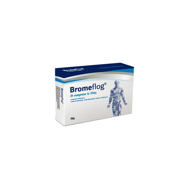 Integratore alimentare a base di bromelina, acido boswellico, escina e vitamina E. Bromeflog è utile per migliorare le naturali funzioni organiche in seguito a processi infiammatori ed ematosi.