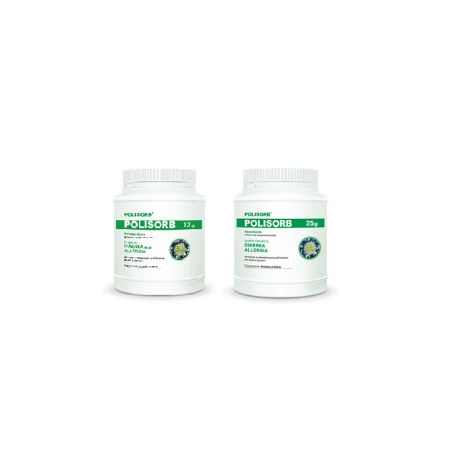 Polisorb è un assorbente inorganico, non selettivo e polifunzionale a base di biossido di silicio altamente disperso. Ha una capacità di assorbimento di 300 mg/g. Il biossido di silicio ha eccellenti proprietà assorbenti e detossificanti.