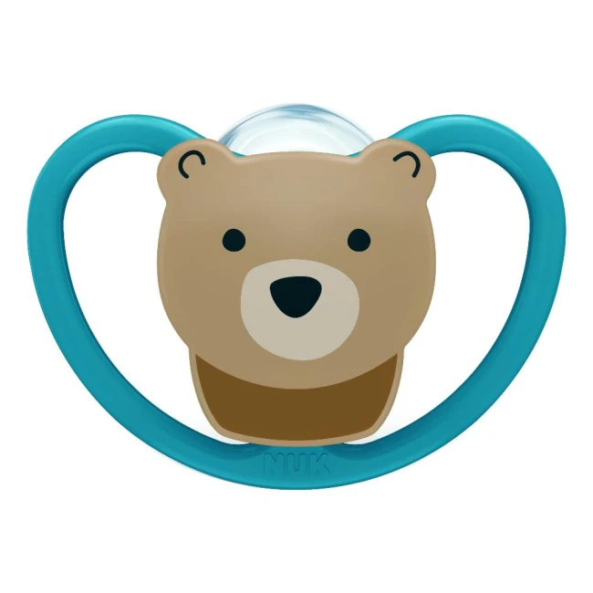 Succhietto Space progettato per consentire alla pelle delicata del bambino di respirare. È caratterizzato da un design innovativo e moderno e da fori di ventilazione extra-large che permettono una massima circolazione d'aria. Forma NUK ortodontica basata sulle più recenti conoscenze mediche per ridurre la pressione su mandibola e denti.