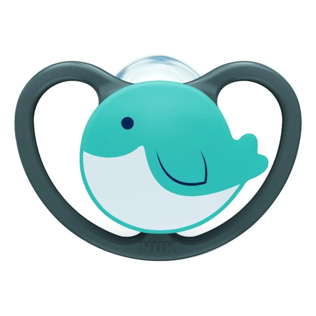 Succhietto Space progettato per consentire alla pelle delicata del bambino di respirare. È caratterizzato da un design innovativo e moderno e da fori di ventilazione extra-large che permettono una massima circolazione d'aria. Forma NUK ortodontica basata sulle più recenti conoscenze mediche per ridurre la pressione su mandibola e denti.