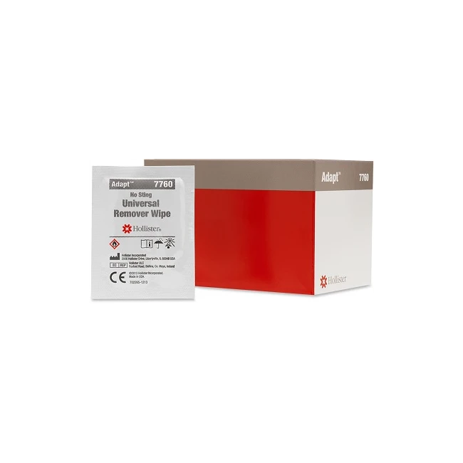 Salvietta imbevuta di liquido a base di silicone per rimuovere dalla cute adesivi medicali, cerotti, barriere e i loro residui. Senza alcol: non brucia. Si asciuga senza lasciare residui. Evapora velocemente quindi è possibile attaccare subito una nuova sacca. Imballaggio individuale: pronta all'uso. Senza DEHP, DBP, BBP e lattice.