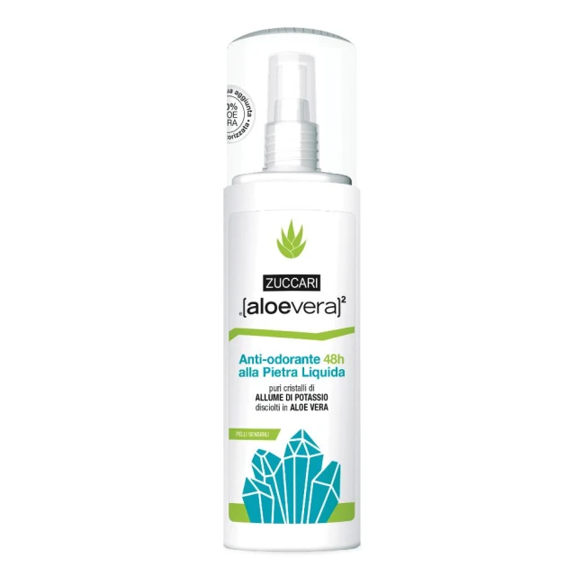 Antiodorante per pelli sensibili, intolleranti e soggette ad arrossamenti grazie alla formula arricchita con puri cristalli di allume di potassio disciolti in Aloevera2.
