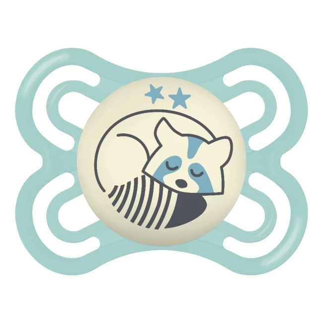 Ciuccio che si illumina al buio, facile da trovare grazie al bottone luminescente. Il ciuccio MAM Perfect Night per favorire uno sviluppo sano del cavo orale ed è facile da trovare al buio.
