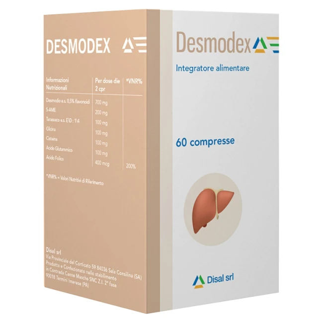 Integratore alimentare a base di desmodio, S-AME, tarassaco, glicina, cisteina e acido glutammico.