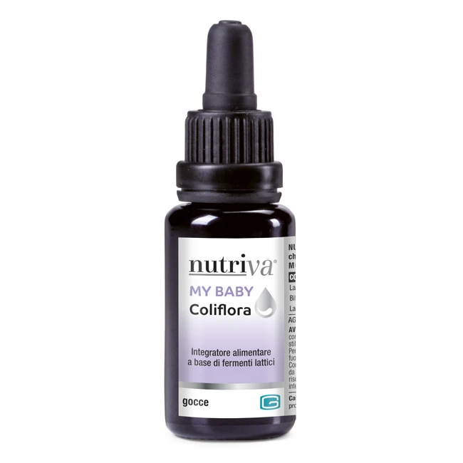 Nutriva My Baby Coliflora è un integratore alimentare a base di fermenti lattici vivi che contribuiscono attivamente, in modo naturale, al riequilibrio delle funzioni della flora intestinale. Nutriva My Baby Coliflora contiene un numero sufficientemente elevato di microrganismi probiotici vivi e attivi in grado di raggiungere l'intestino ed esercitare un'azione di equilibrio sulla microflora intestinale. Un fisiologico equilibrio della flora batterica intestinale è utile supporto in caso di coliti, diarrea e/o costipazione. Il prodotto è privo di zuccheri, sale, amido, latte e derivati del latte, glutine, lievito, soia, coloranti e aromi artificiali, OGM. Adatto a vegetariani e vegani.