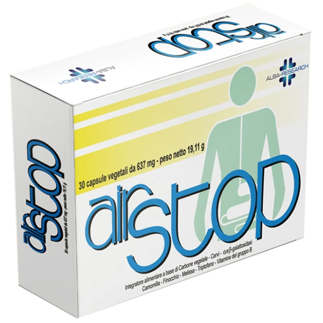 Carbone vegetale, carvi, alfa e beta-galattosidasi, camomilla, finocchio, melissa, L-triptofano, vitamine del gruppo B.